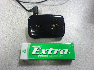 So I got one. Here it is with headphones, close up, and next to some chewing gum for scale!